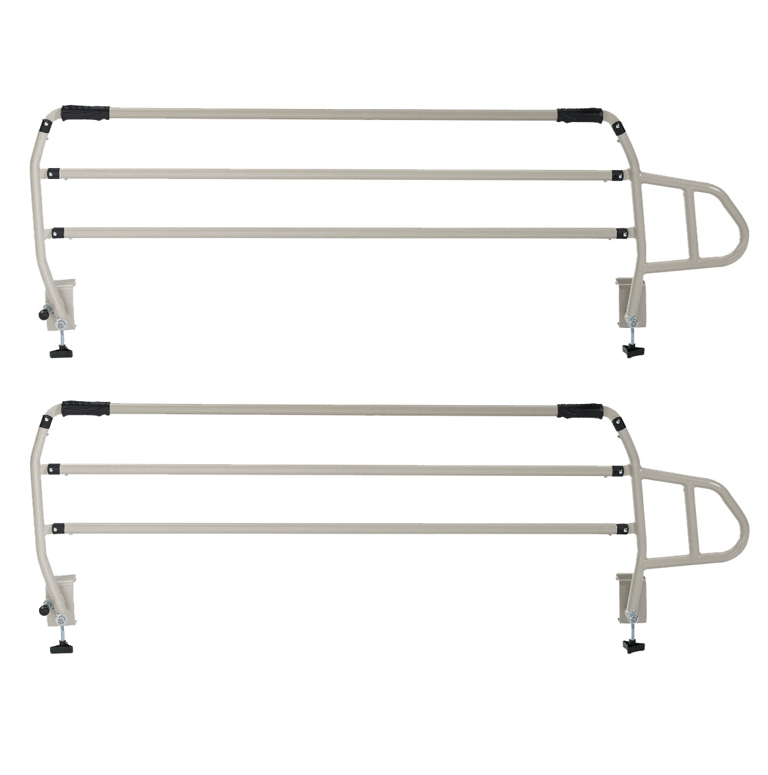 - Barandillas plegables de seguridad: barreras laterales abatibles que previenen caídas y brindan apoyo al entrar o salir de la cama.